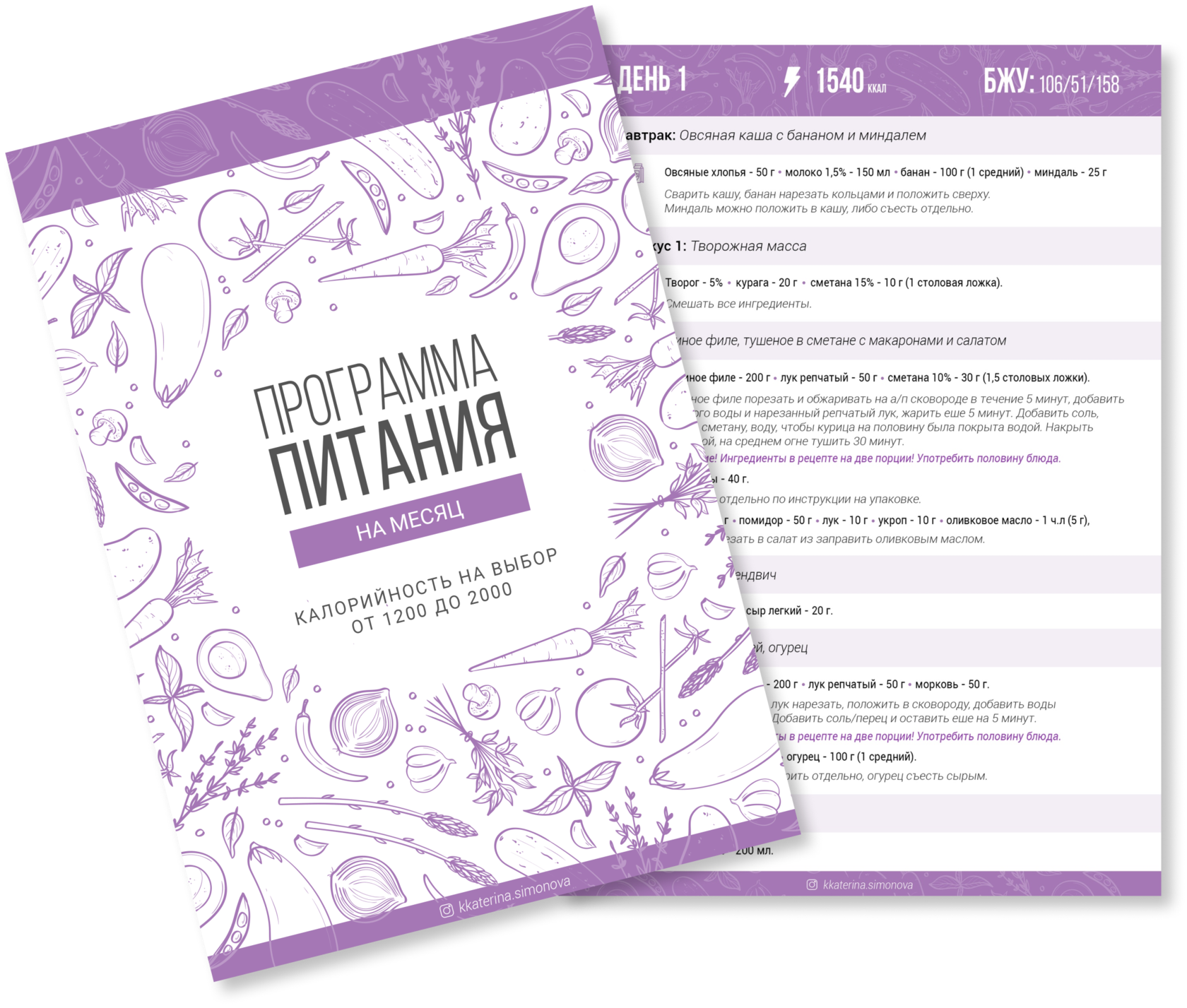 И, да. Эта волшебная формула уже не для кого не секрет: легкий дефицит калорий и сбалансированное по всем макронутриентам питание. Самое сложное здесь – составить себе этот правильный рацион. Потому что только с таким питанием похудение происходит без срывов, уменьшается целлюлит, улучшается качество тела, а вес не возвращается.